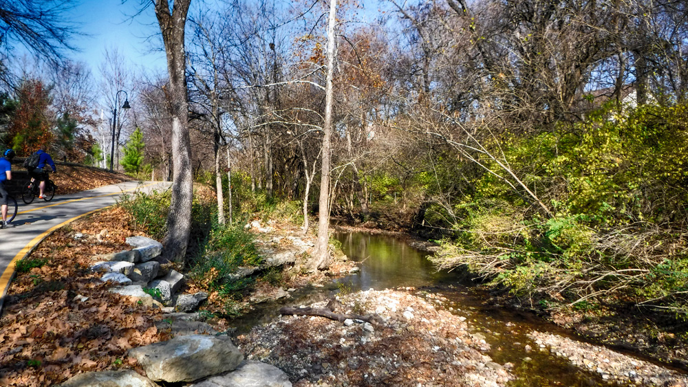 Just east of the new bridge the tunnel under Razorback/265 and trail before and after will soon be paved. And the trail west of the bridge is being constructed that will go under I49 and connect to the already completed trail into Kessler Park.